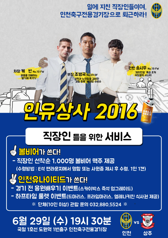 김도훈 감독이 이끄는 인천은 오는 29일 인천축구전용경기장서 펼쳐지는 2016년 현대오일뱅크 K리그 클래식 17라운드에서 상주 상무를 상대로 올 시즌 9번째 홈경기를 치른다.