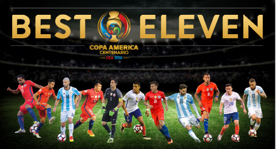 미드필더에는 칠레의 아르투로 비달(바이에른 뮌헨)과 카를레스 아랑기즈(레버쿠젠)과 아르헨티나의 하비에르 마스체라노(바르셀로나)가 베스트11에 선정됐다. 수비수에는 칠레 가리 메델(인터밀란), 마우리시오 이슬라(마르세유), 장 보세주르(콜로콜로)와 아르헨티나 니콜라스 오타멘디(맨체스터시티)가 뽑혔다. 최고의 골키퍼로는 결승전 승부차기 승리의 주역인 칠레의 클라우디오 브라보(바르셀로나)가 선정됐다.