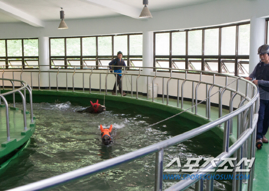 두바이 원정 입상마 '천구'로 올 초 유명세를 탄 서인석 조교사는 "수영은 심폐기능과 직진성 향상, 집중력 강화, 유연성 증진 등에 큰 도움이 된다"며 "꾸준히 수영을 시키고, 즉각적으로 피로를 풀어주는 것이 노하우"라고 했다. 수영은 경주마의 악벽(惡癖)을 개선하는데도 효과적이다. '악벽마'들의 경우, 평소 행동이 예민하고 거친 것이 특징인데, 수영은 집중력 향상에 탁월한 효과가 있기 때문이다. 한 마디로 수영을 통해 무더위도 날리고 탄력 있는 말 근육도 키울 수 있는 것이다.