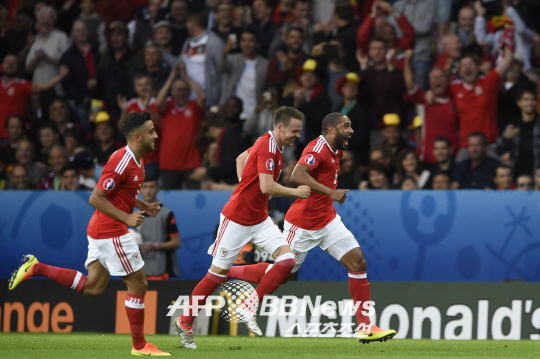 [런던(영국)=이건 스포츠조선닷컴 기자]이제 웨일스는 더 이상 원맨팀이 아니다. 웨일스가 2일 새벽(한국시각) 프랑스 릴에서 열린 벨기에와의 유로 2016 8강전에서 3대1로 승리하며 4강에 진출했다.