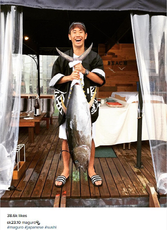2015~2016시즌을 마친 뒤 일본에서 휴식을 취하고 있는 가가와는 최근 자신의 인스타그램을 통해 두 손으로 큰 참치 한 마리를 들고 있는 모습을 공개했다. 일본 근해에서 흔히 이뤄지는 참치 잡이는 일반인들도 어부들의 도움을 받아 행하는 경우가 종종 있다.