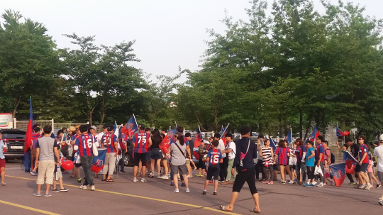 '수원더비'는 이날 두 번째를 맞아 K리그의 새로운 명물로 확고하게 자리잡았음을 입증했다. 지난 5월 수원종합운동장 초대 더비서는 1만1866명의 관중이 모였는데 이날 빅버드(수원월드컵경기장)에는 1만8891명이 운집했다. 자존심 대결도 후끈했다. 경기 시작 1시간 전 경기장 주변은 진풍경을 연출했다. 수원FC 서포터 1000여명이 수원화성 연무대(창룡문)에서 수원월드컵경기장까지 2.3㎞ 구간을 거리행진으로 찾아온 것이다. 대형 깃발을 앞세우고 응원가를 우렁차게 부른 수원FC 팬들은 1시간 전 연무대에서 선수단 사인회, 페이스페인팅 등 이벤트로 축제 열기를 한껏 끌어올린 상태였다. 이들이 수원 서포터스석 반대쪽에 입장하자 양쪽 응원대결로 경기장 안까지 뜨거워졌다. 이에 질세라 수원은 특별 응원가와 스페셜 로고를 선보인 것을 비롯, '수원더비'를 상징하는 스페셜 기념품 이벤트를 마련했다. 골수 수원 삼성팬인 배우 김상호까지 시축자로 초청해 응원 분위기를 달구고 유대감을 자극했다. 절정은 경기 직전 전광판 특별 영상이었다. 김 호 전 감독, 박건하(서울이랜드 감독), 이운재(올림픽대표팀 코치), 정성룡(일본 가와사키), 박지성 등 수원이 낳은 축구 레전드들이 이날 경기를 축하하는 영상메시지를 전했다. 반가운 얼굴이 등장할 때마다 빅버드는 도가니로 변했다. 이 열기는 경기 시작 후에도 이어졌다. 한때 수원의 부진을 꾸짖는 내용의 플래카드를 내보였던 수원 홈팬들은 언제 그랬냐는 듯 그라운드 응원 함성을 리드했다. 수원FC도 질 수 없다는 듯 일당백의 목소리로 '응원 배틀'을 벌였다. 폭염이 잠깐 해넘어간 '수원더비'의 열대야가 수를 놓은 수원 여름밤이었다.