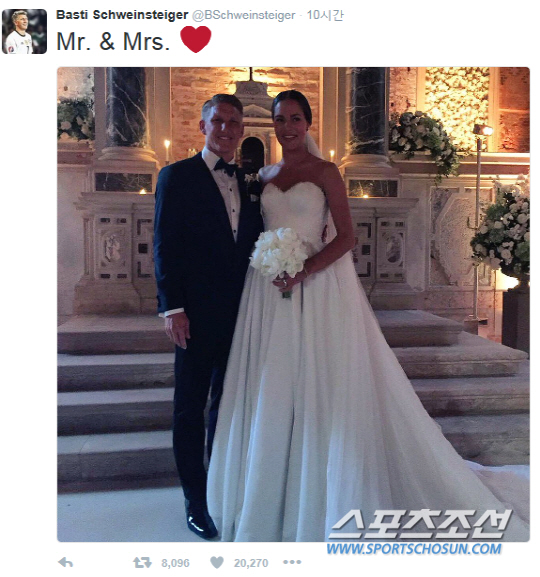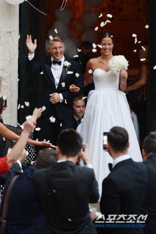 독일 매체들에 따르면 이들은 가까운 친지와 극소수 절친들만을 뮌헨공항으로 초대했다. 슈바인슈이거는 요하임 뢰브 독일 대표팀 감독과 공격수 토마스 뮐러 등을 초대했다. 결혼식 장소가 어딘지는 비밀에 부쳤다. 월요일 뮌헨공항에 결집, 결혼식 장소가 어딘지도 모르는 채 신혼부부의 개인 전세기에 올라탄 하객들은 이탈리아 베니스에 도착했다.