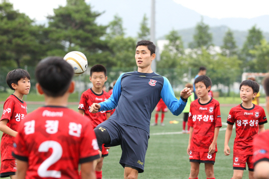 상주 상무의 이름으로 하나 된 프로 선수들과 유소년 선수들이 만났다.