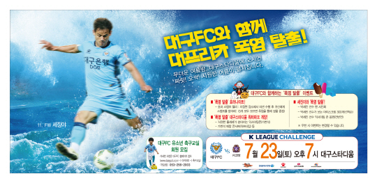 대구에 연일 '폭염 특보'가 내리고 있는 가운데 대구FC가 23일 오후 7시 대구스타디움에서 열리는 FC안양과의 홈경기에 '대프리카 폭염 탈출' 이벤트를 실시한다.