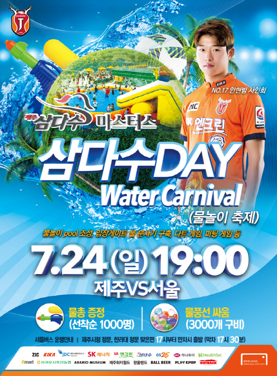 무더운 더위와 스트레스를 한방에 날려보낼 시원한 이벤트도 준비됐다. 경기 시작 전 E석 광장에서 삼다수 DAY 워터 카니발이 열린다. 워터워에 참여할 관중들에게는 물총 1000개(선착순)와 물풍선 3000개가 제공된다. 이밖에도 물놀이 수영장, 입장게이트 레인존, 다트 게임, 퍼팅 게임 등 다양한 물놀이 이벤트가 기다리고 있다. 이벤트 후 쾌적한 경기 관람을 위해 수건을 지참하는 것이 좋다. 또, 경기 시작 전 E석 광장에서 골 넣고 경품까지 거머쥐는 체험형 축구 이벤트 슈팅스타가 열린다.