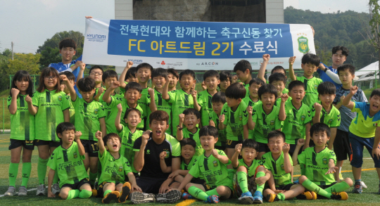 전북 현대가 전북 지역의 축구 꿈나무들과의 아름다운 동행을 실천하고 힘을 보내기 위해 손을 내밀었다.
