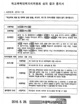 지난해 한 포털 인터넷 게시판을 통해 불거진 '김병지의 아들' 김모군과 B모군의 학교 폭력 사건에 대한 학교측의 2차 심의 결과가 알려졌다.