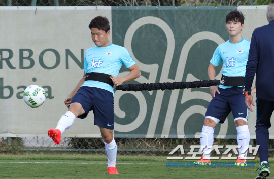 26일 오후(현지시간) 브라질 상파울루 주 버본 아치바이아 리조트호텔 간이구장에서 2016년 리우올림픽 남자축구대표팀 류승우, 이슬찬이 피지컬 서킷 트레이닝을 하고 있다.