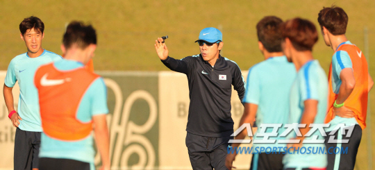 올림픽축구대표 신태용 감독이 27일 오후(현지시간) 브라질 상파울루 주 버본 아치바이아(Bourbon Atibaia)리조트호텔 간이구장에서 열린 훈련 중 선수들에게 훈련 지시를 하고 있다./2016.7.27 상파울루=올림픽사진공동취재단 I/
