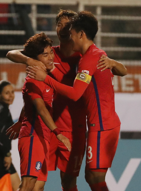 중심에는 2선 공격진이 있었다. 신 감독은 원톱에 황희찬(잘츠부르크), 2선에 류승우 권창훈 문창진을 포진시킨 4-2-3-1 카드를 꺼냈다. 2선 공격진은 딱 부러지는 활약으로 신 감독의 기대에 부응했다. 3골 모두 2선 공격진에서 나왔다. 문창진이 2골, 류승우가 1골을 넣었다. 류승우 권창훈 문창진은 정해진 위치없이 수시로 포지션을 바꿨다. 그 움직임이 대단히 위력적이었다. 상대 수비에게 혼동을 주기에 충분했다. 셋의 특성은 잃지 않았다. 류승우는 유연한 터치를 바탕으로 돌파에 나섰고, 권창훈은 특유의 저돌적인 움직임으로 수차례 슈팅을 날렸다. 문창진은 결정적인 순간 결정력을 과시했다.