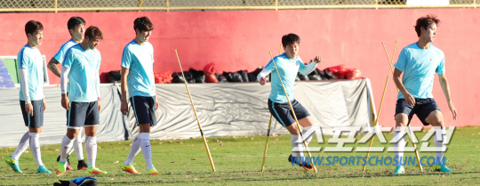2016년 리우올림픽 남자축구 권창훈, 정승현 등 선수들이 2일 오후(현지시간) 브라질 살바도르 마노엘 바라다스(Barradao) 경기장에서 피지컬 셔킷 트레이닝을 하고 있다. /2016.8. 2/ 살바도르=올림픽사진공동취재단