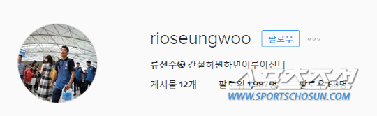 류승우(23·레버쿠젠)는 리우올림픽을 앞두고 마음을 다잡았다. 올해초 인스타그램 ID를 '리우승우(rioseungwoo)'로 바꿨다. 자신의 영문 성인 'Ryu'를 'Rio'로 표기했다. 리우올림픽 메달을 향한 강력한 의지를 표명했다. '류선수, 간절히 원하면 이루어진다'고 썼다.