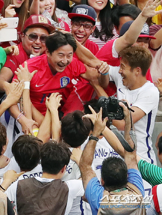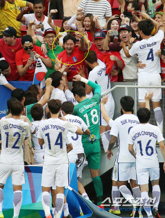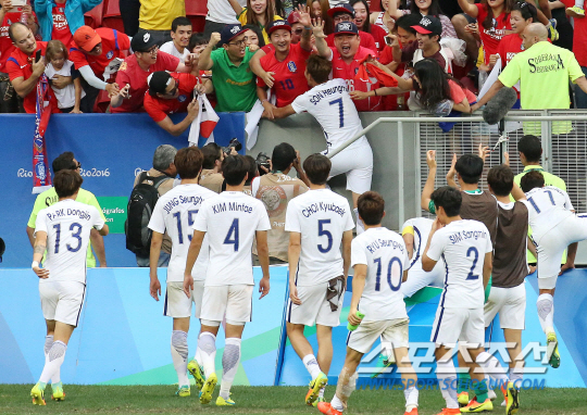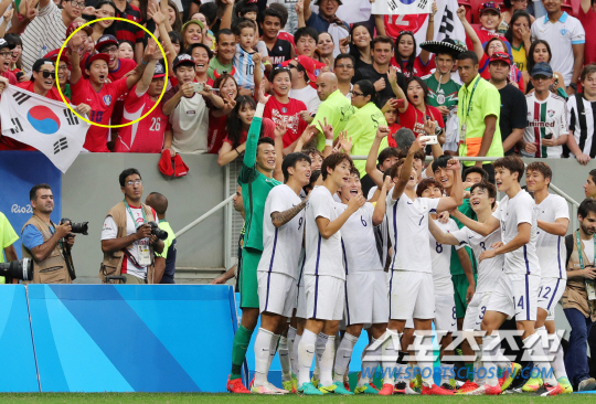 멕시코전 승리 후 손흥민이 달려간 곳에 이천수가 있었다. 2002 월드컵의 주역 이천수가 리우올림픽 축구대표팀 선수들과 8강 진출의 기쁨을 함께 나눴다.