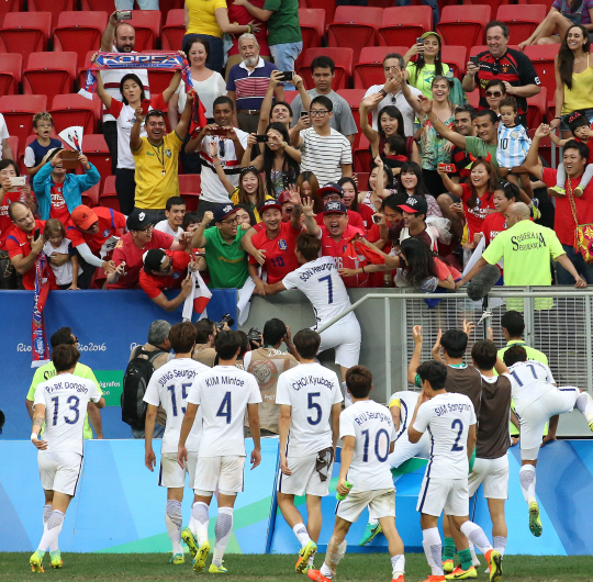 신태용호는 리우에서 올림픽 축구사를 새롭게 작성하고 있다. 피지를 무려 8대0으로 대파하며 한국 축구사를 재정리하기 시작했다. 올림픽 본선 1차전에서 승리한 것은 1996년 애틀랜타 대회 이후 20년 만이었다. 최다 득점과 최다골 차 승리를 갈아치웠다. 최단 시간 3득점(1분 45초), 올림픽 포함 국제축구연맹(FIFA) 주관 대회 최초 남자 해트트릭(류승우) 등도 탄생했다,
