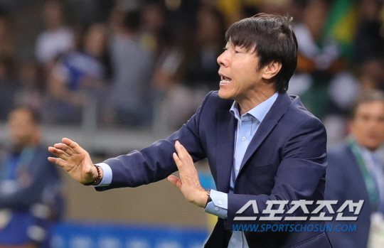 한국축구대표 신태용 감독이 13일 오후(현지시간) 2016년 리우올림픽 남자축구 8강전 온두라스전이 열린 브라질 벨루오리존치 미네이랑 경기장에서 손을 들어 작전 지시를 하고 있다./2016.8.13 벨루오리존치=올림픽사진공동취재단
