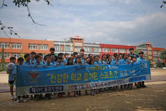 대구FC가 21일 대구 아양초등학교와 대륜중학교를 방문해 '건강한 학교! 즐거운 스포츠'를 실시했다.
