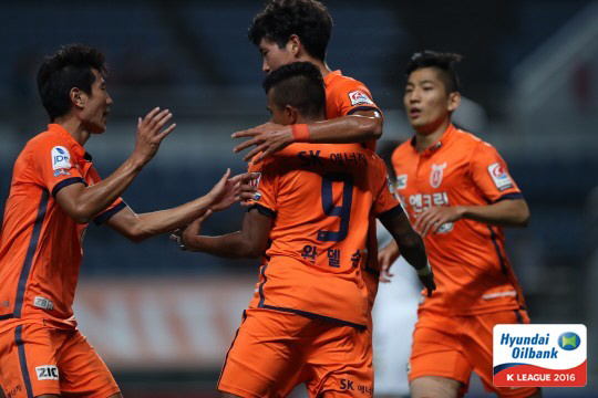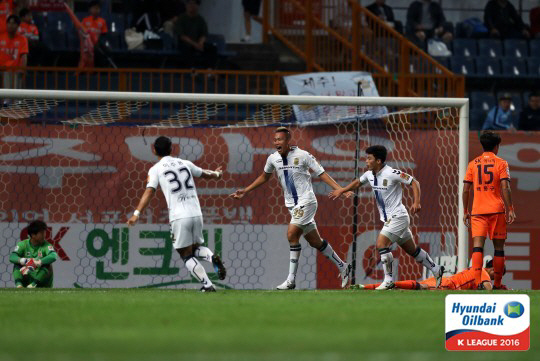 하지만 제주도 물러서지 않았다. 1-1을 만들었다. 전반 24분 신형민이 제주 완델손의 돌파를 무리하게 막다가 페널티박스 안에서 파울을 범했다. 페널티킥. 전반 25분 완델손이 직접 키커로 나서 왼발로 차 넣었다.