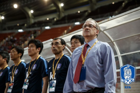 대표팀 스태프와 함께 경기장은 찾은 슈틸리케 감독은 그라운드에서 시선을 고정한 채 경기 상황을 점검했다.