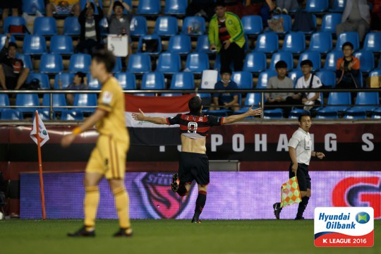후반에도 흐름은 비슷했다. 포항은 후반 9분 오창현 대신 라자르를 투입하며 반격에 나섰다. 하지만 광주의 역습은 날카로웠다. 12분 왼쪽을 무너뜨린 김민혁의 오른발 슈팅이 김진영 골키퍼에 걸렸다. 잘버티던 포항이 선제골을 넣었다. 16분 양동현의 패스를 받은 라자르가 오른쪽에서 가운데로 이동하며 왼발슈팅으로 득점에 성공했다. 기세를 탄 포항은 라자르의 발끝이 살아나며 공격을 주도했다. 25분에는 라자르가 오른쪽을 돌파하며 날린 왼발슈팅이 윤보상 골키퍼에 막혔다. 27분에는 문창진의 코너킥을 라자르가 헤딩으로 연결했지만 이번에도 윤보상 골키퍼의 선방에 막혔다.