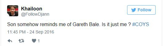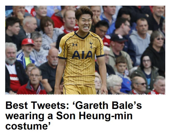 '가레스 베일이 손흥민 옷 입고 나온 것같다'는 한줄 코멘트였다. '손흥민에게서 가레스 베일이 떠오르는 건 나뿐인가'라고 썼다.