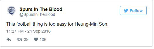 두번째 골, 박스안에서 오른발 왼발을 번갈아 드리블하며 수비진을 줄줄이 벗겨내고 골을 터뜨리는 장면에선 메시를 떠올렸다. '손흥민은 아시아 메시다' '손흥민이 언제 메시가 됐지?'라는 팬들의 탄성이 잇달았다. 이밖에도 '하늘이 우리 모두를 구하시려고 손흥민을 내려보내셨다''손흥민은 의심할 여지 없는, 세계 최고의 선수다' '손흥민에겐 축구가 제일 쉬웠다' 등 손흥민에게 반한 토트넘 팬들의 뜨거운 찬사가 쏟아졌다. 전영지 기자 sky4us@sportschosun.com