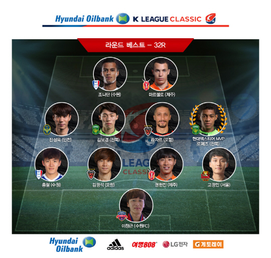 이번 라운드 베스트 공격수 부문에는 조나탄(수원)과 마르셀로(제주)가 이름을 올렸다. 마르셀로는 25일 상주전에서 멀티 골을 쏘아 올리며 제주의 3년 연속 그룹A행에 힘을 보탰다.