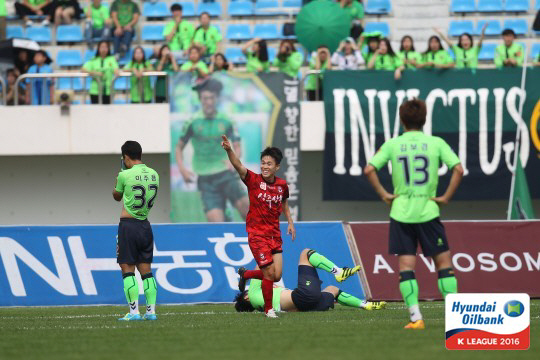 상주는 2일 상주시민운동장에서 열린 전북과의 2016년 현대오일뱅크 K리그 클래식 33라운드에서 1대1로 비겼다. 이날 무승부로 승점 42점이 된 상주는 같은 시간 패한 성남과 광주를 따돌리고 6위를 지켰다. 상위 그룹행에 성공했다. 전북(승점 60)은 33경기 무패행진을 이어나갔지만 승리한 서울(승점 57)의 맹추격을 허용하게 됐다.