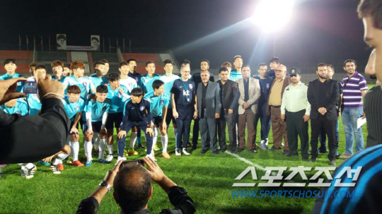 심지어 선수단을 위해 기념품까지 준비했다. 테르메. 이란 전통 식탁 받침보다. 이란에서 예의를 차릴 때 주고 받는 보편적인 선물이라고 한다. 여기에 꼬드스시 시장과 시의장까지 참석해 자리를 빛냈다.