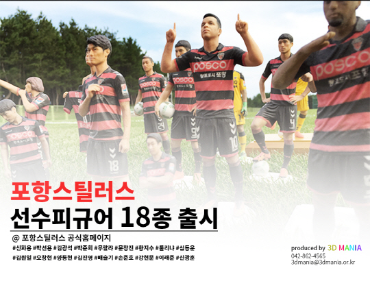 포항 스틸러스가 3D프린트 전문업체 3D매니아와 콜라보레이션으로 주요 선수들의 3D 실사 피규어를 출시한다.