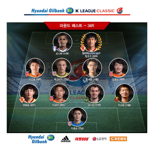 '무등산 패트리어트' 정조국(34·광주)이 2016년 현대오일뱅크 K리그 클래식 34라운드 최우수선수(MVP)에 선정됐다.