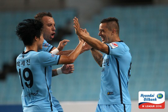 부산의 고공행진도 매섭다. 부산은 23일 부천을 홈으로 불러들여 2대1로 승리하며 4위(승점 64) 자리를 꿰찼다. 5연승을 질주 중인 부산은 최근 10경기에서 무려 8승을 챙기는 무시무시한 뒷심을 발휘하고 있다. 부산은 PO 진출을 사실상 확정했다. 클래식 직행 티켓을 거머쥘 수 있는 경우의 수도 있다. 마지막 경기에서 승리하고 대구와 강원이 모두 패할 경우 다득점을 따져 2위에 오를 수도 있다.