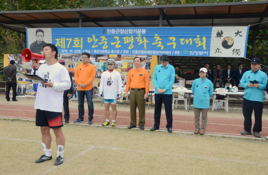 우성덕 대회장은 대회사에서 "안중근 평화축구대회는 축구의 기량을 겨루는 일반 대회와는 그 성격이 다르다"면서 "우리 후손들이 민족의 영웅 안중근 장군의 정신을 고취, 추구해 나가자는 각별한 의미를 지닌 대회"라고 강조했다.