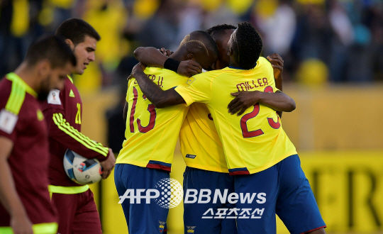 에콰도르는 16일(한국시각) 에콰도르 키토 아타후알파 올림픽 스타디움에사 치러진 2018년 러시아 월드컵 남미예선 12차전에서 베네수엘라를 3대0으로 눌렀다. 이 승리로 6승2무4패, 승점 20점으로 3위에 올랐다. 베네수엘라는 1승2무9패, 승점 5점으로 최하위를 벗어나지 못했다. 이어 벌어진 경기서는 3위였던 콜롬비아가 아르헨티나에 패배, 6위로 밀려났다. .