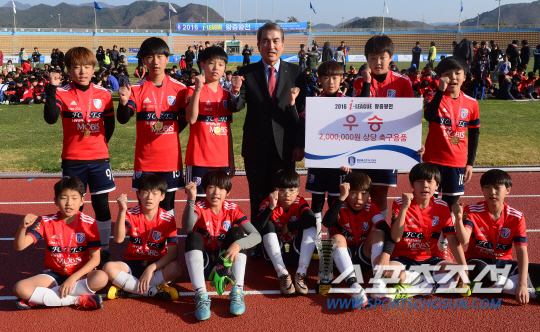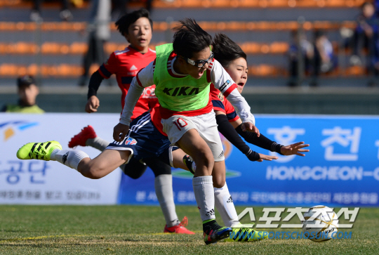 따스한 햇살이 내리쬐던 20일 홍천종합운동장. 이른 아침부터 북적였다. 각 팀들의 시선은 청주 FC CTS-대구 준스포츠의 마지막 한경기에 집중됐다. 7개월간의 대장정을 정리하는 결승 무대. TV 중계를 위해 카메라가 설치되고, 탈락한 팀들, 함께온 가족, 관계자들이 관중석에 자리를 잡았다. 제법 진짜 축구대회 같은 분위기가 물씬 풍겼다. 어린 선수들은 긴장감을 숨기지 못했다. 관중석도 감염됐다. 학부형들도 덩달아 긴장하는 모습이 역력했다.