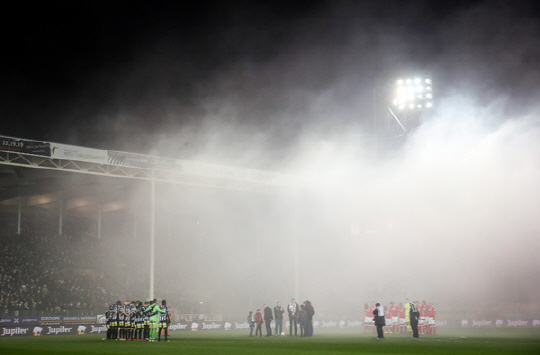 이날 경기에서 처음 있는 일이 아니었다. 이미 앞선 2차례나 폭죽과 동전 등 이물질이 그라운드 안으로 투척됐다. 심판은 그 때마다 경기를 중단시켰다. 결국 심판의 인내심은 한계에 왔고 경기 중단을 선언한 것이다. 벨기에 리그 사무국은 리에주의 승리로 결정할 지 아니면 재 경기를 치를지 아직 정하지 못하고 있다.