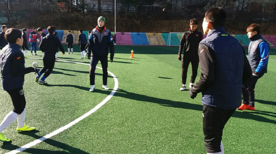 백미는 훈련 뒤 진행된 프로선수와 광명중의 대결이었다. 다소 긴장을 놓고 있던 K리거들, 까마득한 '후배'들의 공격에 당황한 기색이 역력했다. 장난기 없이 진지하게 진행됐던 승부, 프로선수팀이 승리를 거뒀지만 그라운드 위에선 승자도 패자도 없었다.