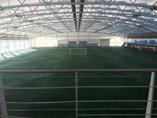 일단 넓다. 부지만 330에이커. 1.3제곱킬로미터에 이른다. 이해하기 쉽게 40만평이다. 축구장만 13개 면이다. 이 가운데 하나는 A대표팀 전용이다. 웸블리의 잔디와 똑같게 만들어놓았다. 실내 축구장도 3면이다. 악천후일 때는 이곳에서 훈련할 수 있다. 풋살장을 겸한 실내 체육관도 하나가 있다. 건설비만 1억파운드가 들었다. 현재 환율로는 1460억원이다.