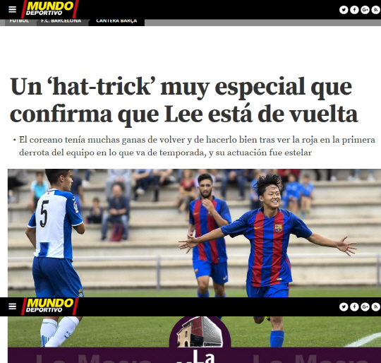 '코리안 메시' 이승우(18·바르셀로나 후베닐 A)의 주가가 스페인에서 점점 높아지고 있다. 이승우의 꿈인 바르셀로나 1군 승격에 대한 긍정적인 평가도 흘러나오고 있다.