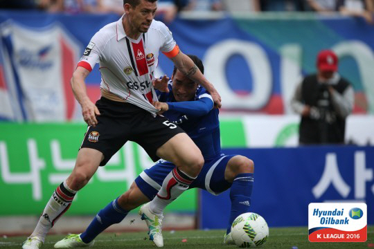 올해 처음으로 '56분의 벽'이 깨졌다. 프로연맹의 통계 자료에 따르면 올 시즌 K리그 클래식 평균 APT는 58분56초로 나타났다. 지난해(56분38초)에 비해 2분18초가 증가한 것뿐만 아니라 AFC가 목표로 내걸고 있는 60분에 근접한 수치다. 일본 J1(1부리그)의 2016년 APT(56분24초), 2015년 호주아시안컵 본선(경기당 55분15초)과 비교해 보면 K리그의 기록은 더욱 인상적이다.