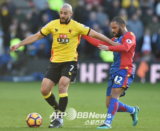 [비커리지로드(영국 왓포드)=이건 스포츠조선닷컴 기자]크리스탈 팰리스가 신임 감독 부임 후 첫 경기에서도 승리하지 못했다. 크리스탈 팰리스는 26일 영국 왓포드 비카리지 로드 스타디움에서 열린 왓포드와의 2016~2017시즌 잉글랜드 프리미어리그(EPL) 18라운드 원정경기에서 1대1로 비겼다. 샘 앨러다이스 감독이 새로왔지만 크리스탈 팰리스의 경기력은 여전히 좋지 않았다.