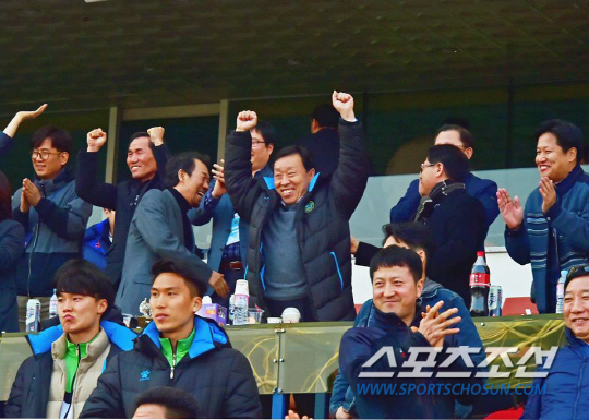 지난 19일 올시즌 두번째 홈경기, 시장님은 어김없이 현장을 지켰다. 후반 26분, 루카의 결승골이 터지는 순간 서포터들과 하이파이브를 나누며 뜨겁게 환호했다. '구단주' 시장님의 진심이 통했을까. '초록늑대' 안산은 안양과의 '4호선 더비'에서 또 한번 승리했다. 상록수 처럼 늘 푸르른 희망을 꿈꾸는 안산. 그 속에 빚어진 유쾌한 홈 2연승이었다.