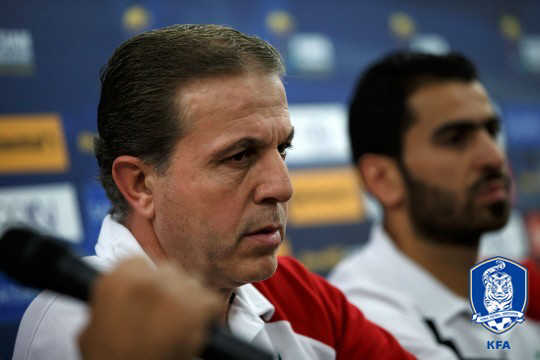 아이만 하킴 감독은 27일 서울월드컵경기장에서 열린 공식 기자회견에 참석해 "이란이 조 1위로 승점 14점을 기록 중이다. 그러나 최종 결과는 아직 속단할 수 없다"며 "2~3위 경쟁이 치열하지만 1위인 이란과도 똑같은 조건에서 경쟁하고 있다. 이번 경기가 중요하다"고 말했다.