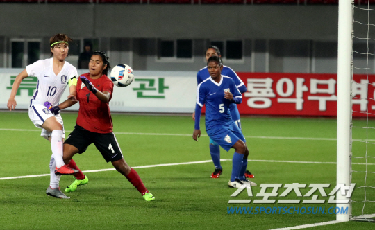 마지막 10번째 골을 포함, 2골을 터뜨린 지소연(첼시 레이디스)은 "첫 스타트를 잘 끊어 기분이 좋다. 북한전은 어려운 경기가 예상되지만, 부담감을 내려놓고 즐기며 플레이할 수 있도록 하겠다"고 씩씩하게 말했다.