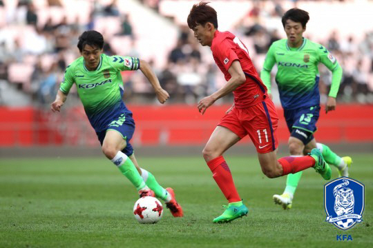 장도에 나서는 후배들을 위해 최강희 전북 감독은 최대한 성의 있는 라인업을 꾸렸다. 최전방에 에두가 섰고, 2선에는 김보경 정 혁 고무열, 에델이 포진했다. 수비형 미드필더에는 최철순이 나섰고, 포백은 박원재 조성환 김민재 이 용이 이뤘다. 골문은 김태호가 지켰다. 신태용호도 최정예로 나섰다. 24일 합류한 이승우가 선발로 포진했다. 조영욱 이승우 백승호가 최전방에 섰고, 한찬희 이승모 이진현에 허리진에 포진했다. 포백은 부상에서 돌아온 정태욱을 중심으로 이상민 우찬양 윤종규가 이뤘다. 골키퍼 장갑은 송범근이 꼈다.