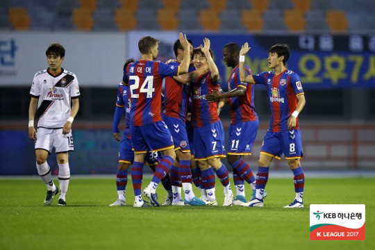 경남이 따라잡았다. 전반 34분 정원진의 아크 왼쪽 프리킥 직접 슈팅이 골키퍼 손에 걸렸다. 흘러나온 공을 김근환이 오른발로 차 넣으며 1골 만회했다.