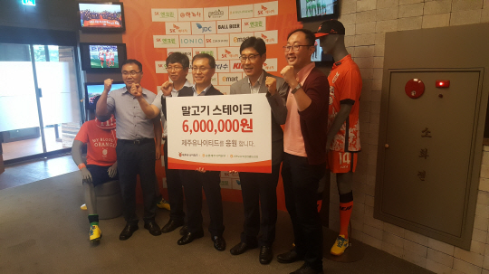 이에 제주는 농협제주지역본부, 서귀포시축협와 특별한 이벤트를 준비했다. 농협은 이날 경기서 600만원 상당의 국내 최초 말고기전문 브랜드 '웰미트(Well-meat)' 스테이크를 팬들에게 제공한다.