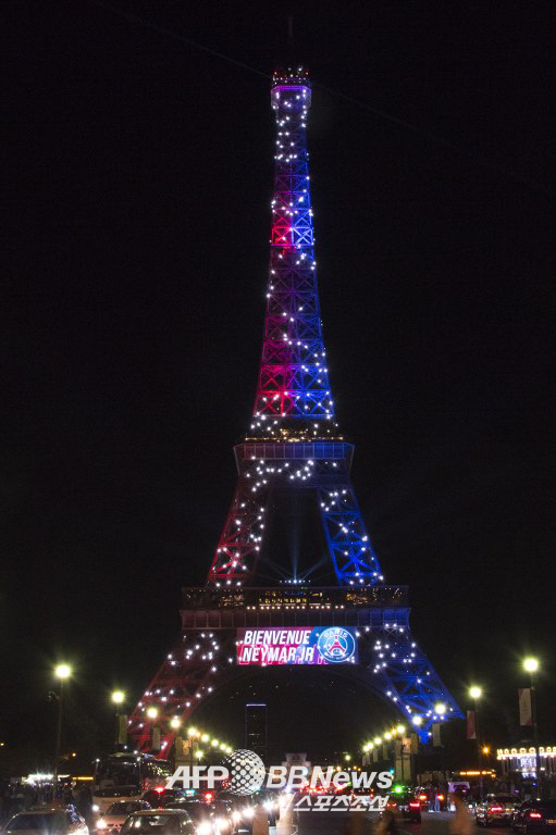 네이마르의 PSG 입성을 반긴 건 팬뿐만이 아니었다. 파리의 상징물인 에펠탑은 빨강, 파랑 조명으로 '네이마르 주니어 환영합니다(Bienvenue, Neymar Jr)라는 문구와 PSG 팀 로고를 띄웠다. 격한 환영의 뜻을 표했다.