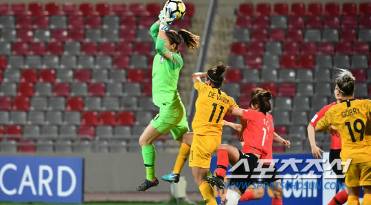 이날 윤영글은 호주의 파상공세를 온몸으로 막아냈다. 파주NFC, 요르단 현지에서 3주간 정유석 골키퍼코치, 후배 강가애(28·구미스포츠토토), 정보람(27·화천KSPO)과 치열하게 훈련해왔다. 왼발의 정 코치는 매일 세트피스 훈련 때마다 코너킥 전담키커로 나서 강력한 크로스로 선수들을 단련시켰다. 윤영글은 "코치님의 강한 크로스에 익숙해지다보니 막상 호주선수들의 킥은 그보다 약하게 느껴졌다. 큰 도움이 됐다"며 고마움을 표했다. 중앙수비수 출신의 시야와 리딩 능력, 빌드업의 시작점이 되는 킥은 인상적이었다. 전반 한차례, 수비라인의 백패스 실수 때도 윤영글은 박스 앞으로 뛰어나와 안전하게 클리어링 해냈다.