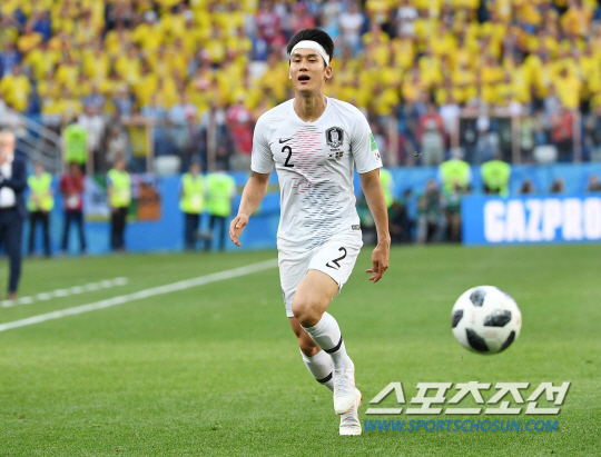 2018 러시아월드컵 한국과 스웨덴의 조별 예선 첫 경기가 18일 오후(한국시각) 러시아 니즈니 노브고로드 스타디움에서 열렸다. 이용이 공을 따라갔지만 놓치고 있다. 니즈니노브고로드(러시아)=정재근 기자 cjg@sportschosun.com